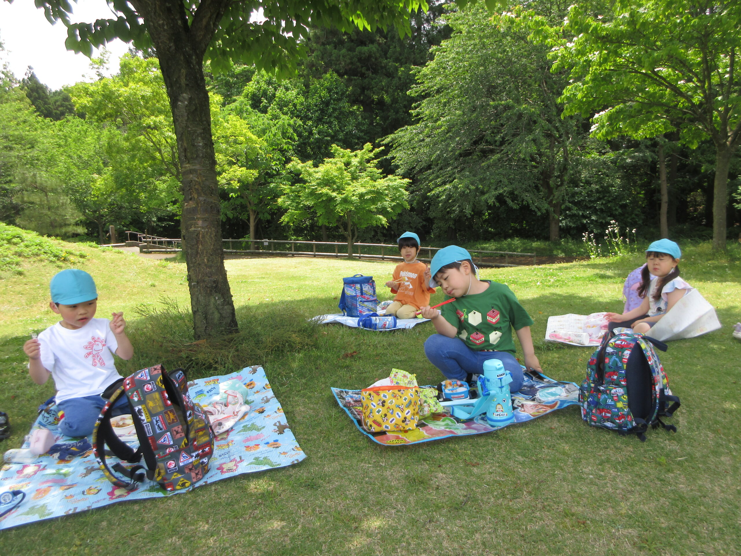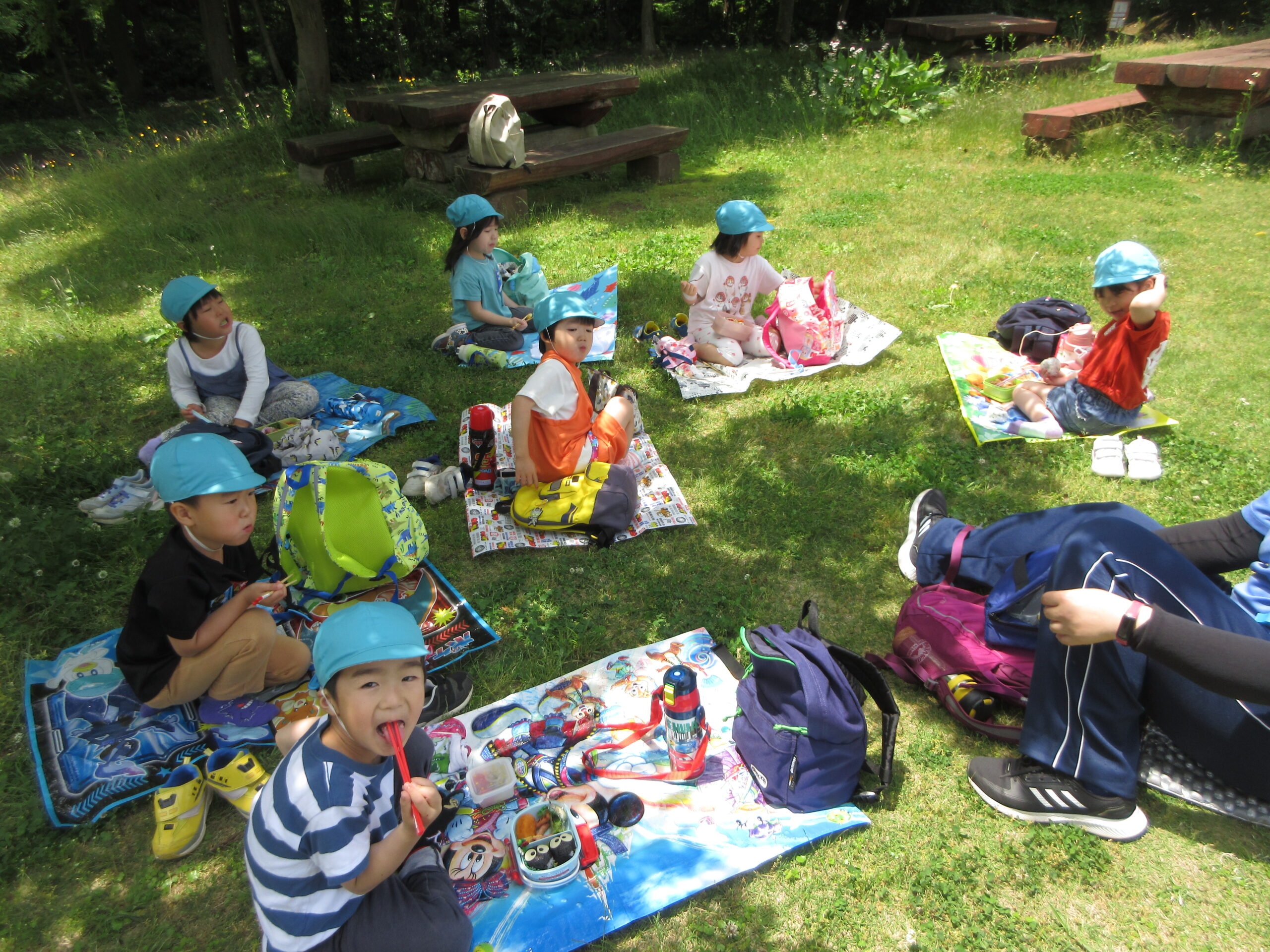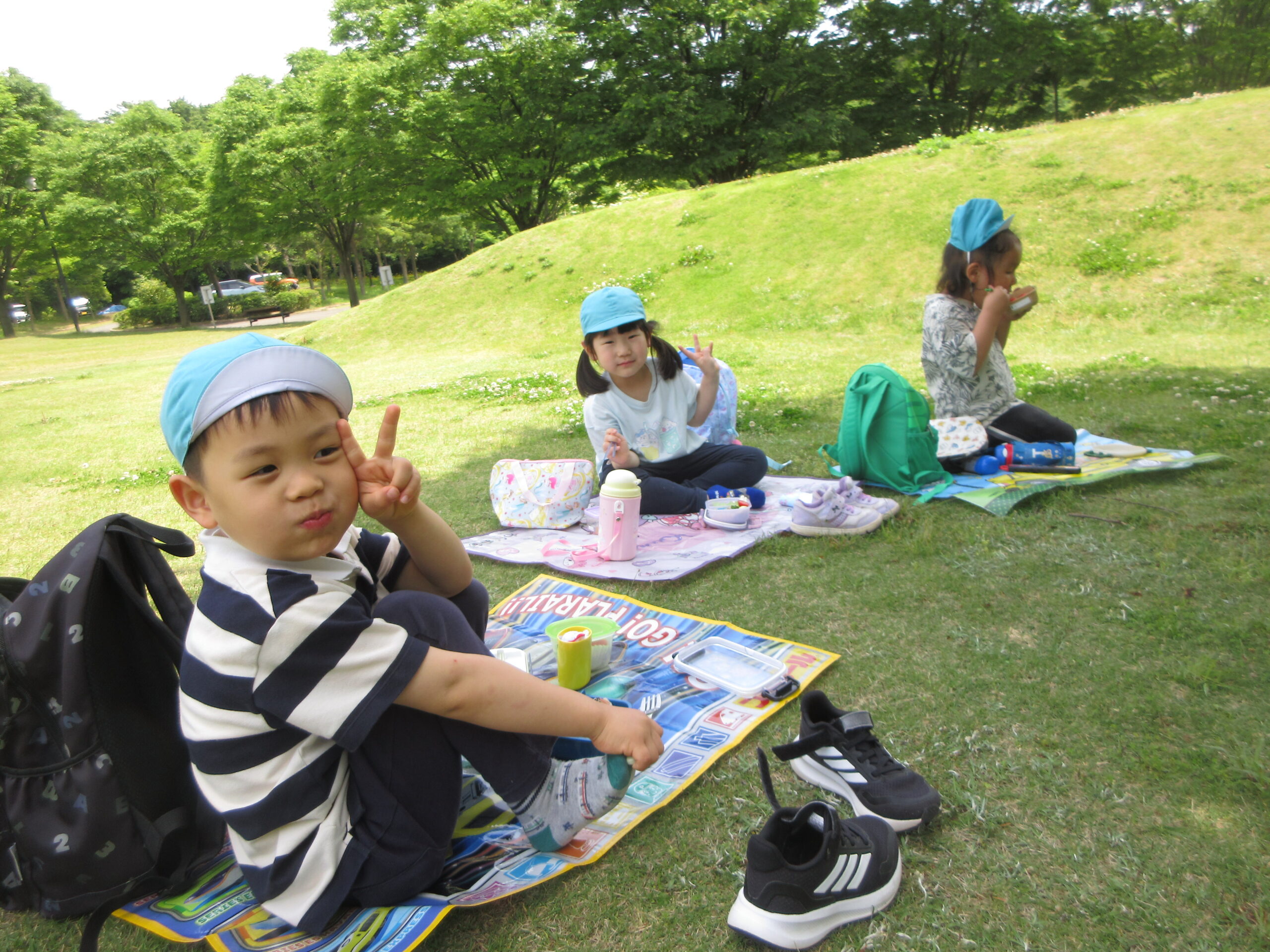 たくさん歩いてお腹が減ったようで「せんせいおなかへったー」「おべんとうたべたーい」と