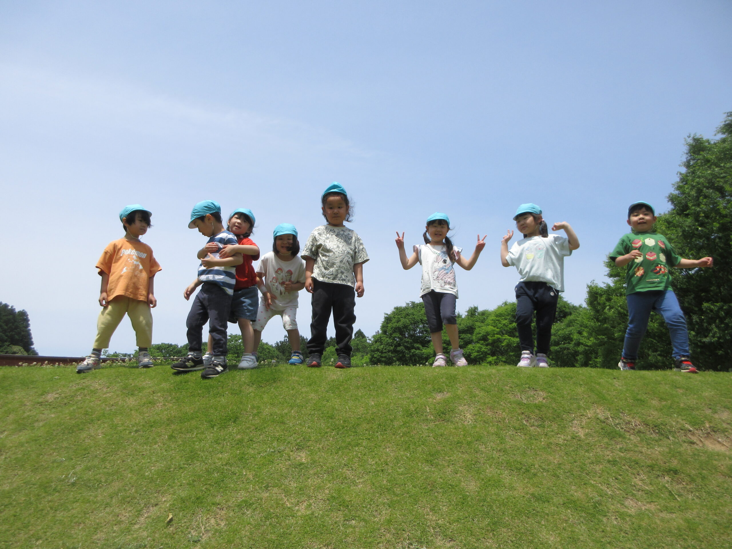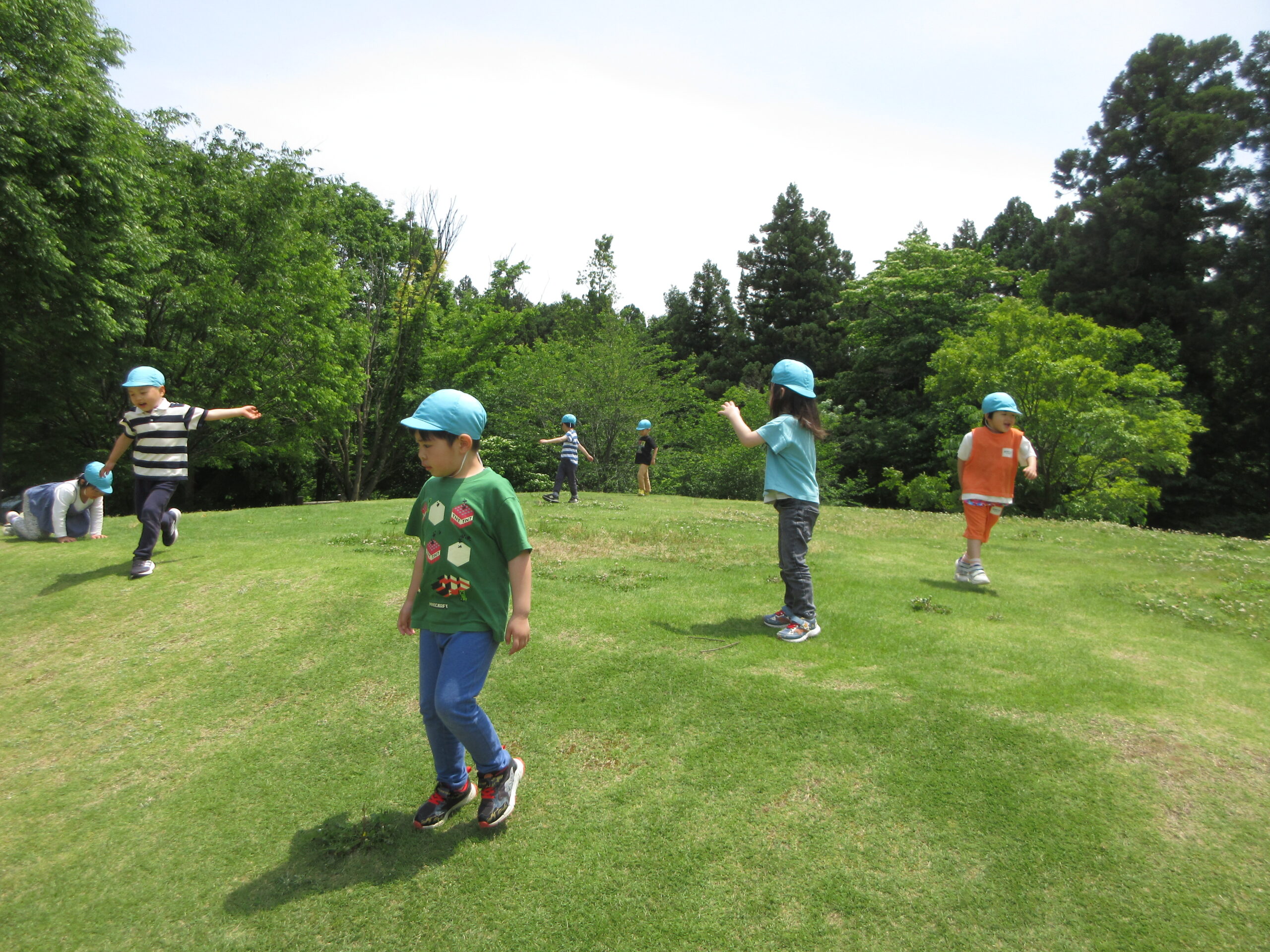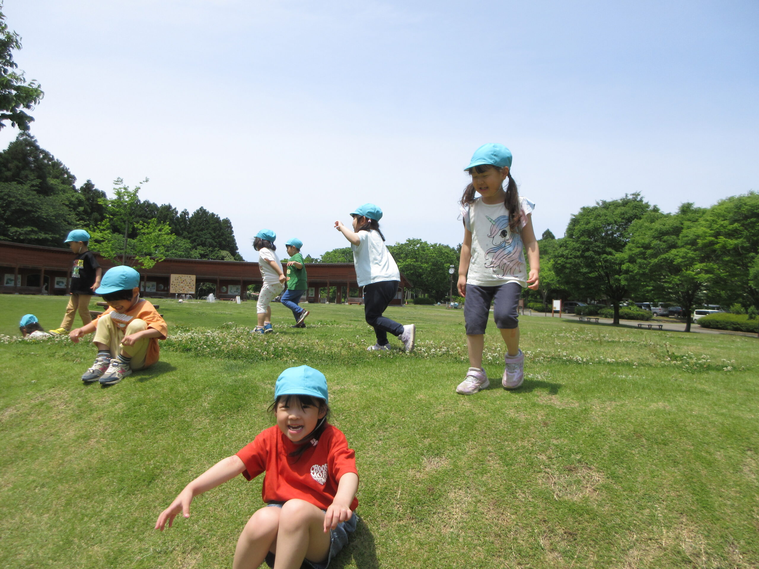 小高い芝生の山を昇り降りしたり、転がってみたりと汗だくで遊びました💦