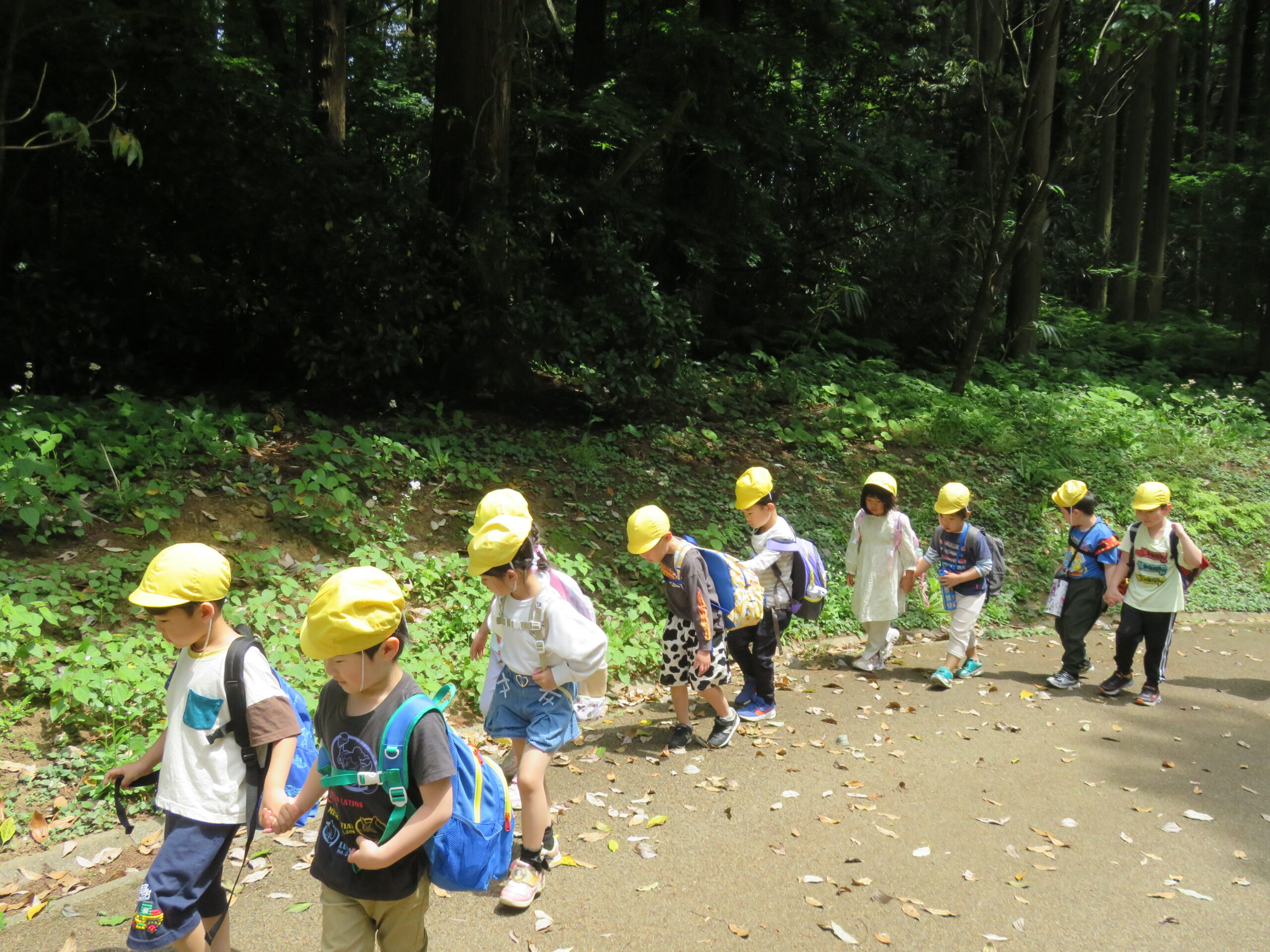森の中を散策する月組、道のわきをよーく見て見るとありの行列を発見🐜