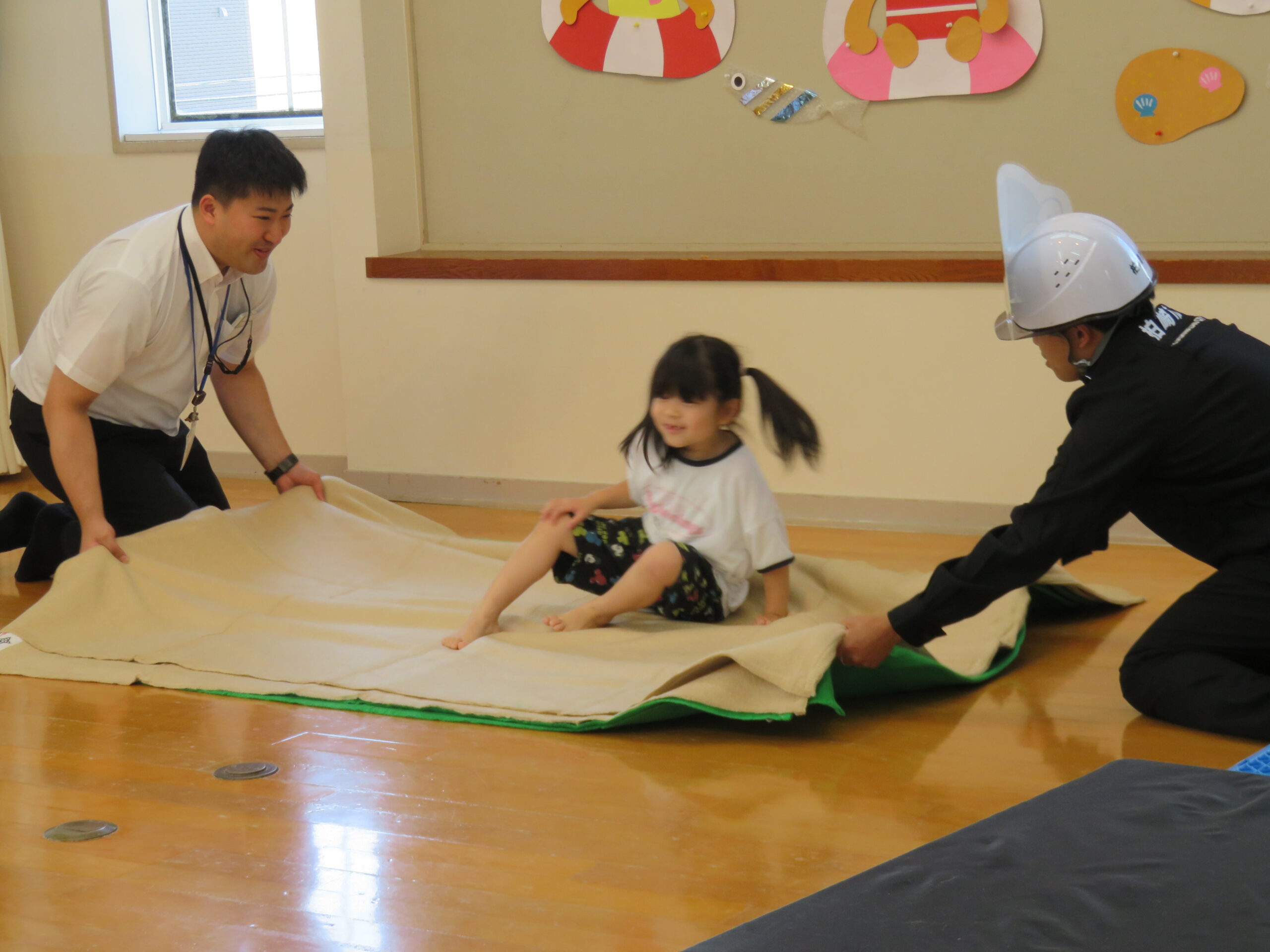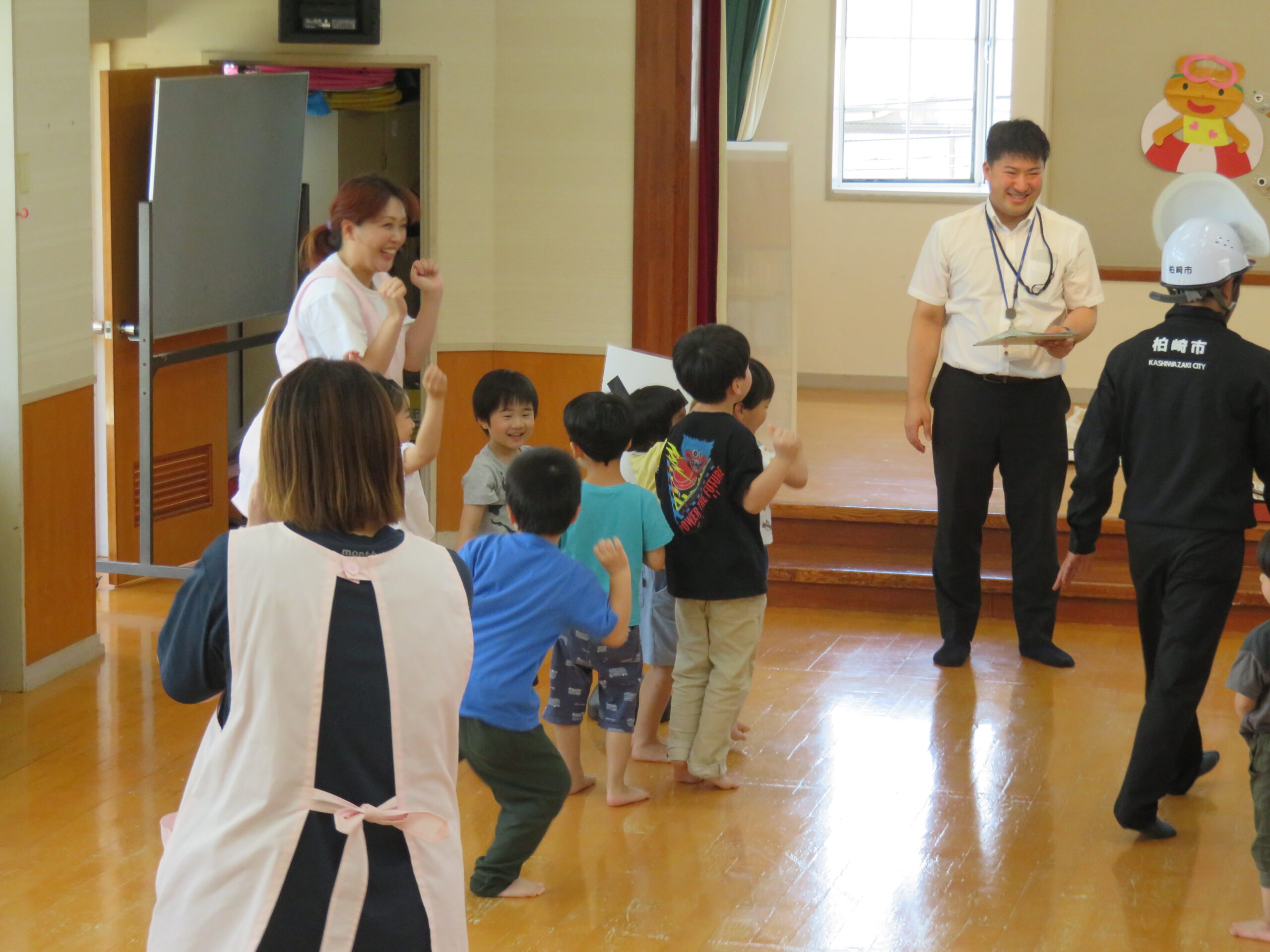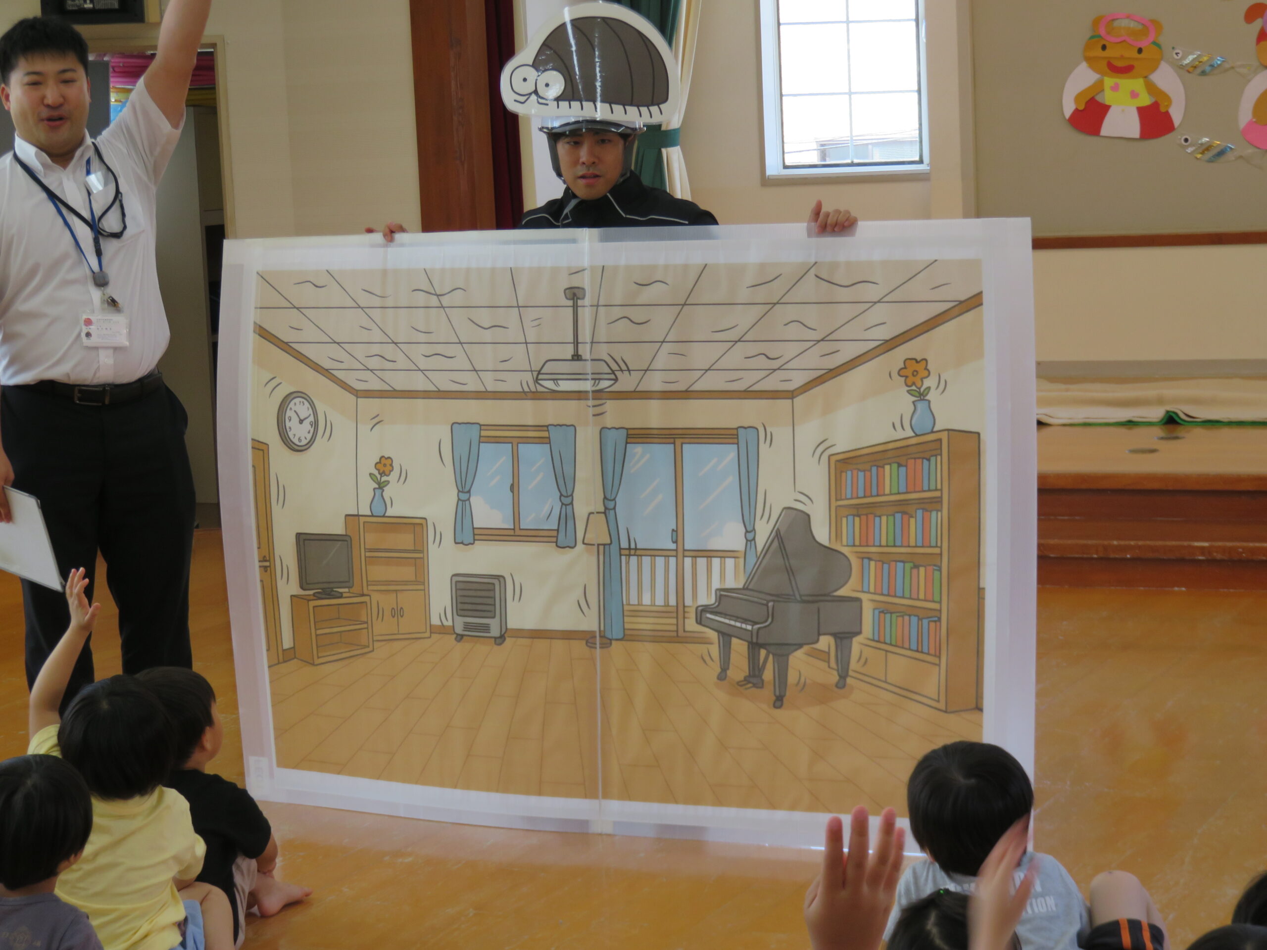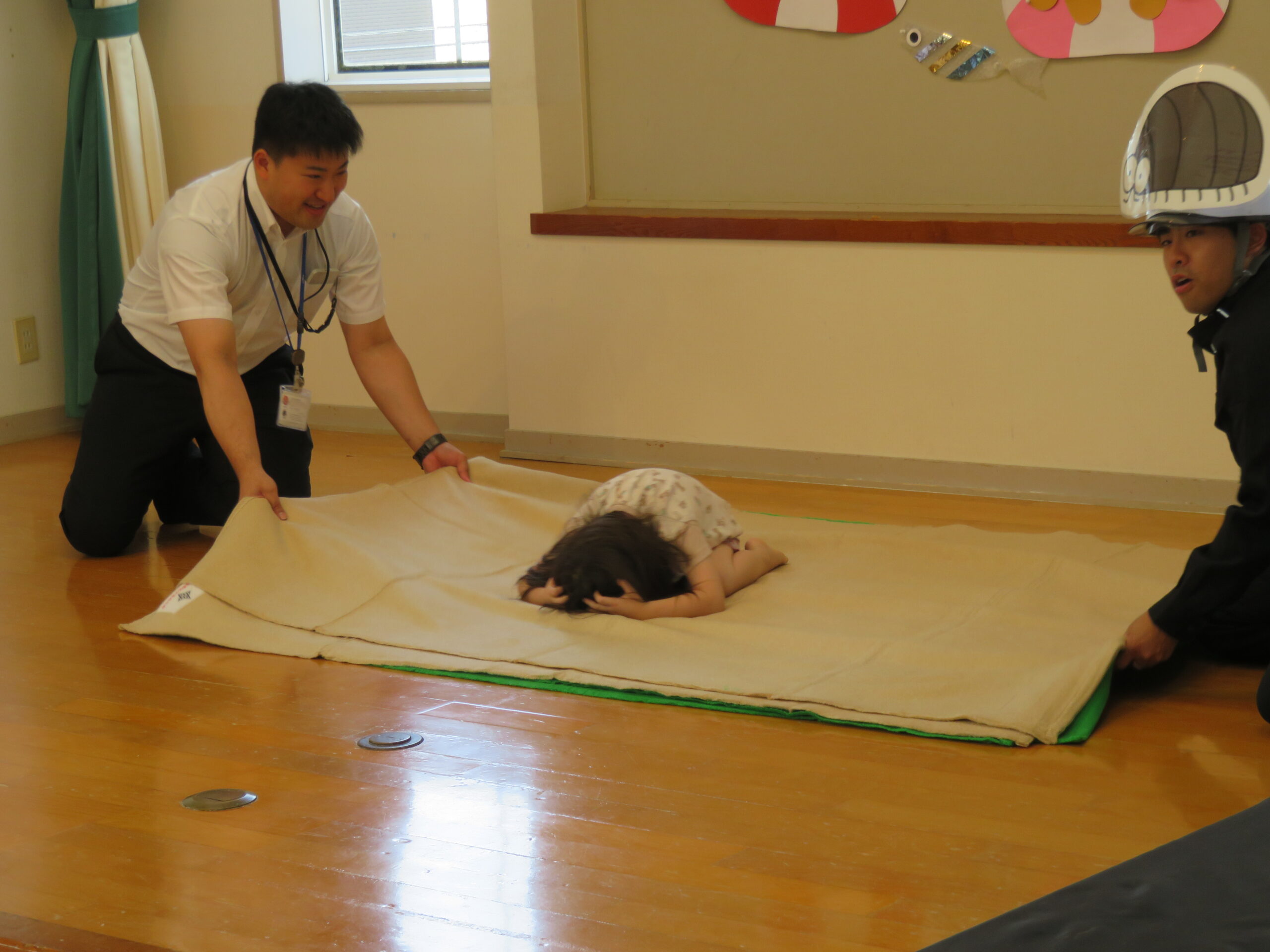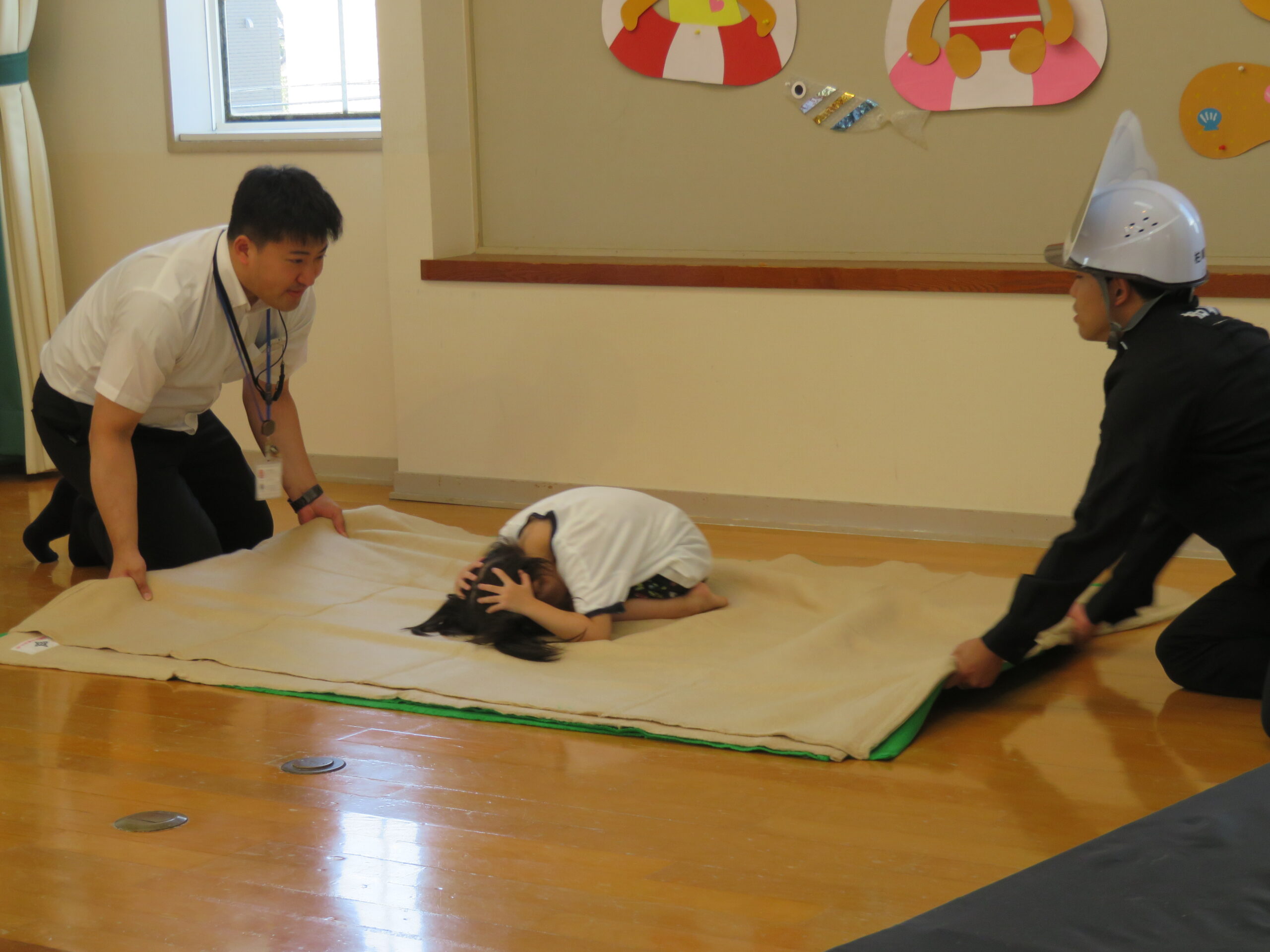 続いて、地震・火事・津波の時はどんなポーズをすればいいかを教えてもらいました❗