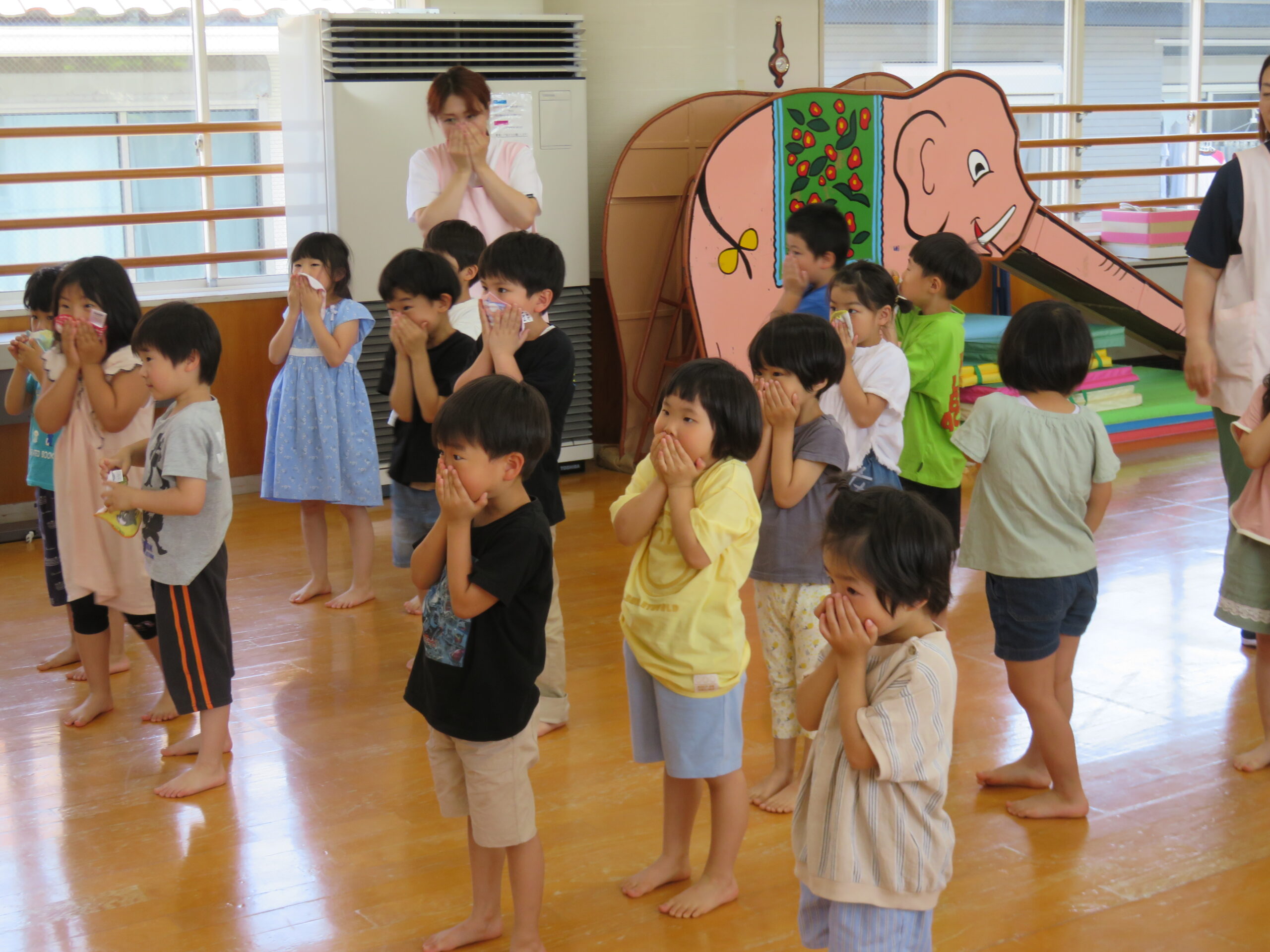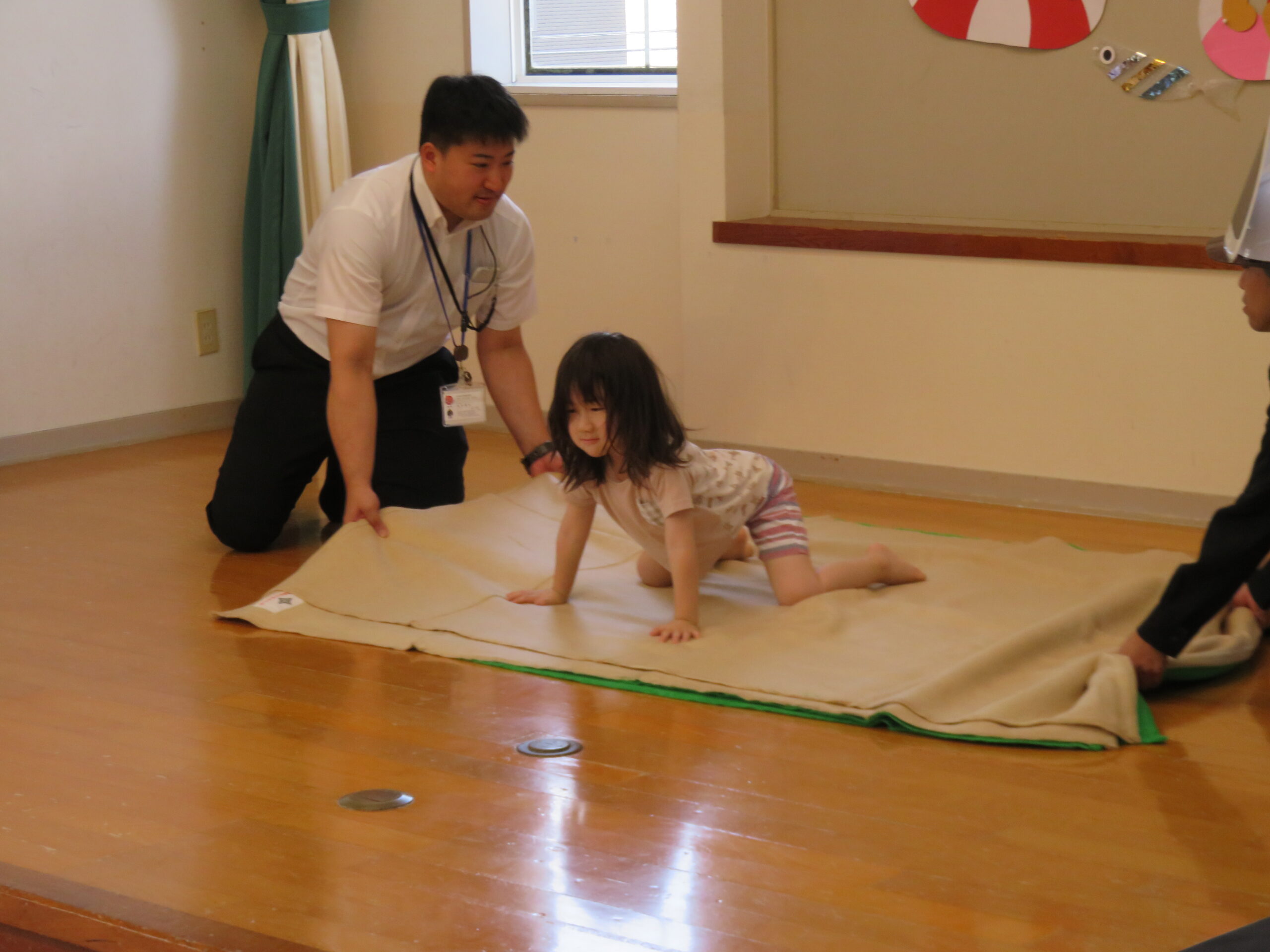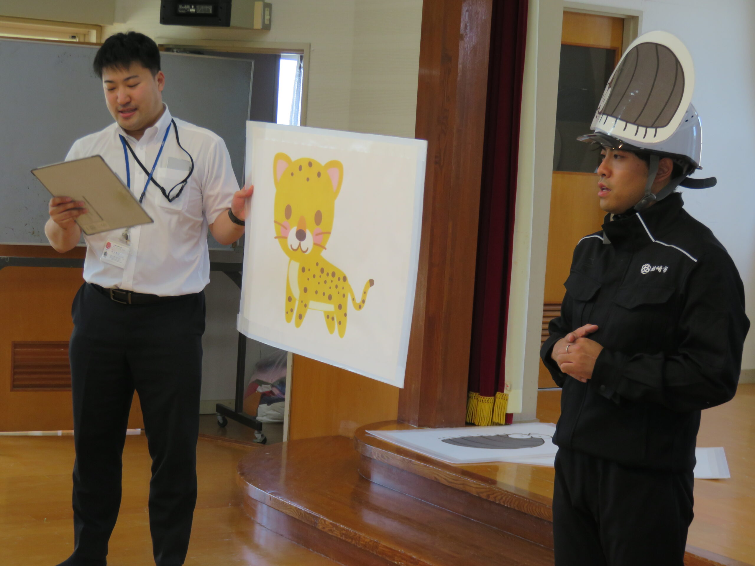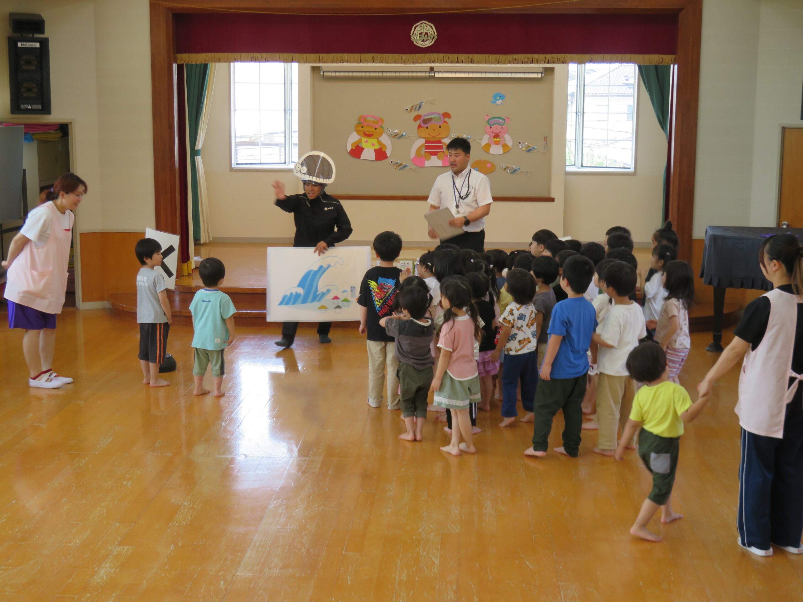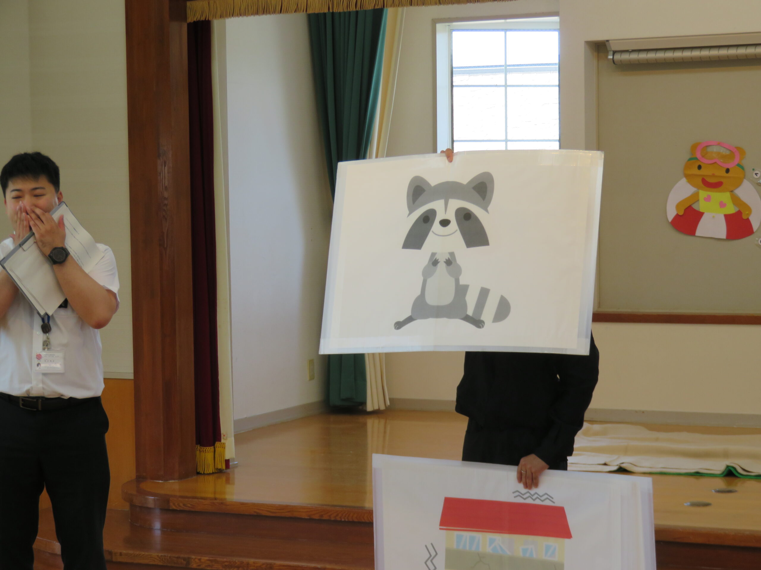 続いて、地震・火事・津波の時はどんなポーズをすればいいかを教えてもらいました❗
