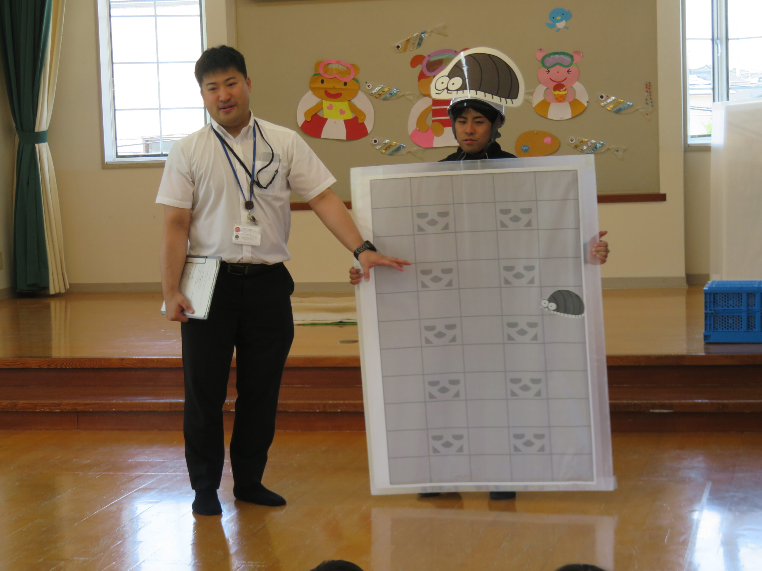 今回の「防災教育」では、ダンゴムシ先生から色々な防災について教えてもらい、