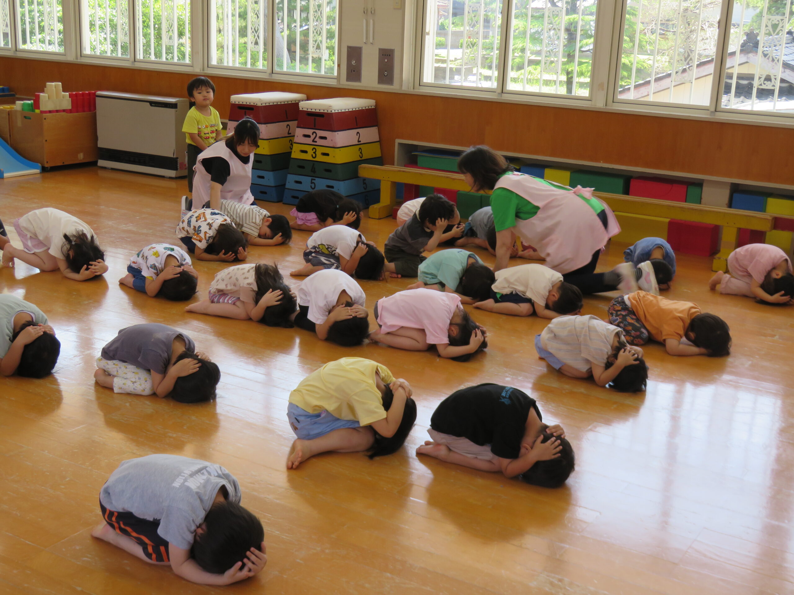 地震の時は・・・頭を守るためにダンゴムシのポーズ🫡