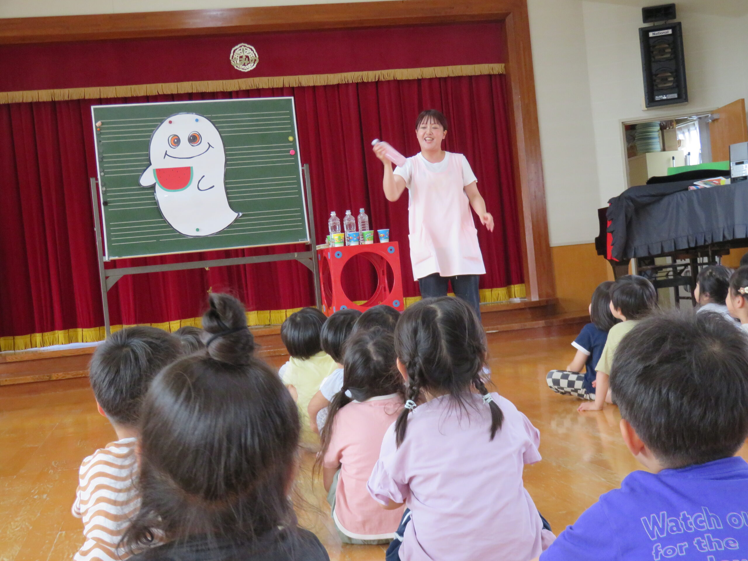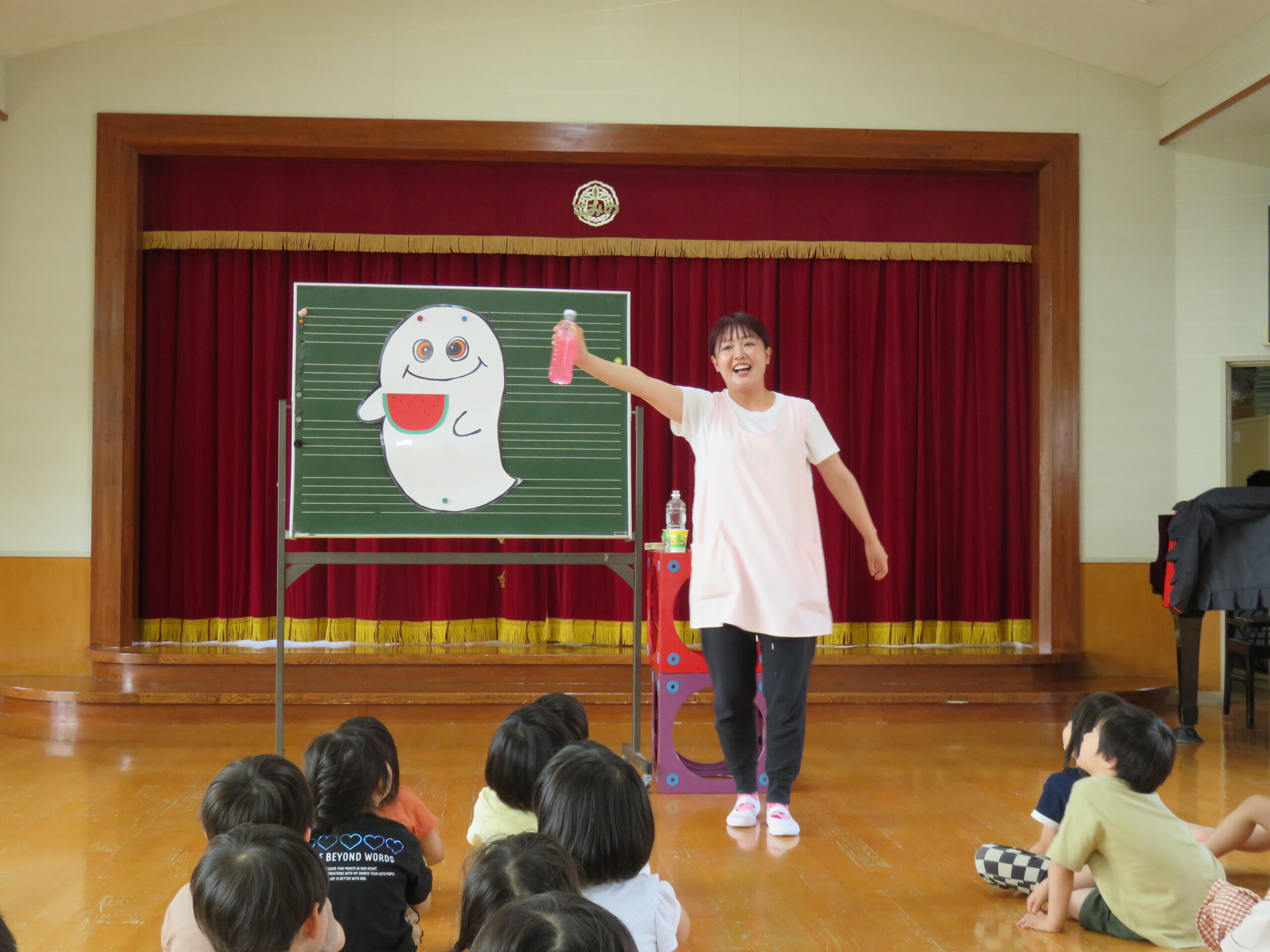 のどがかわいたばけたくん、先生が美味しいジュースを作ってくれるみたいです🧃