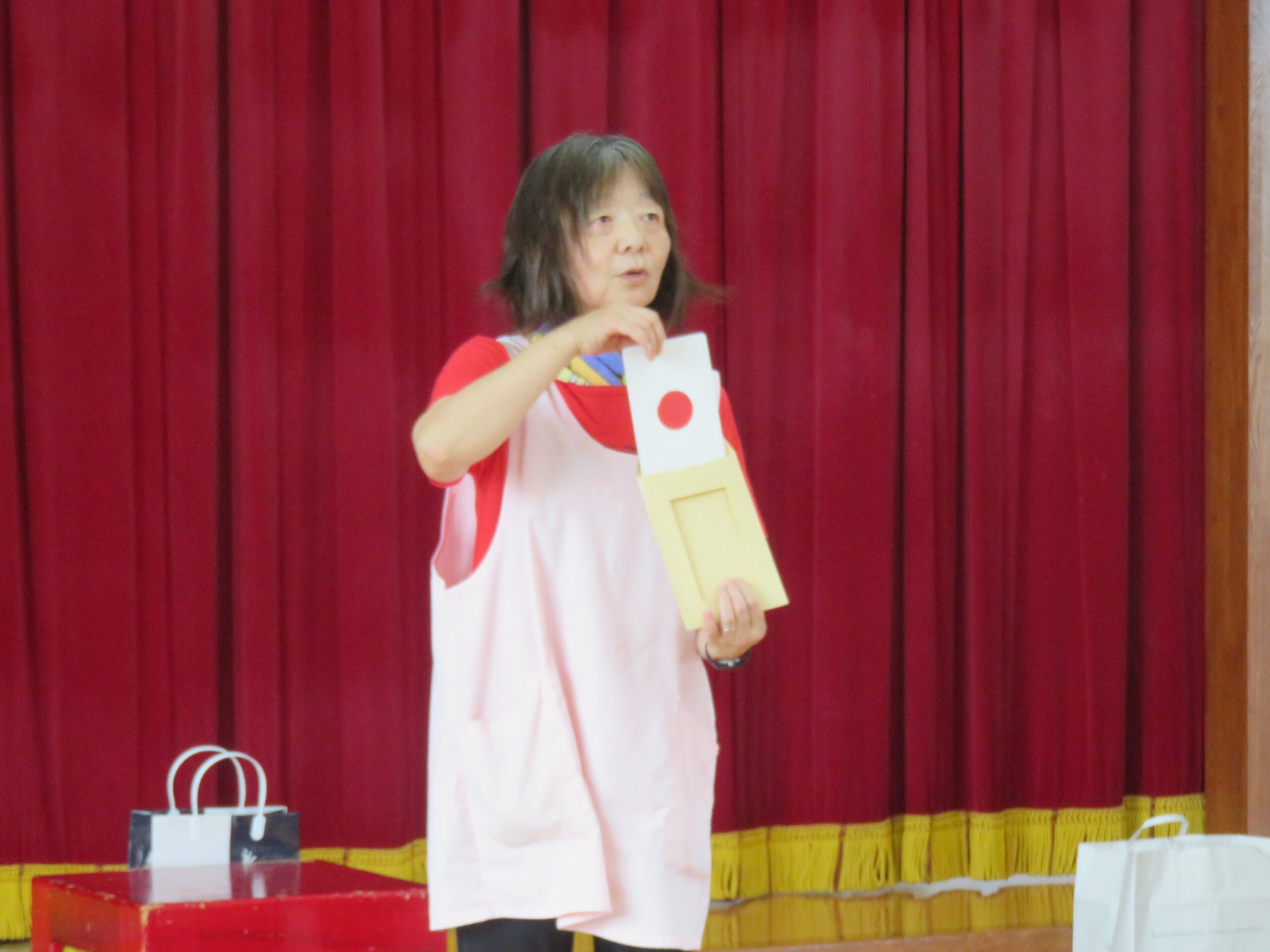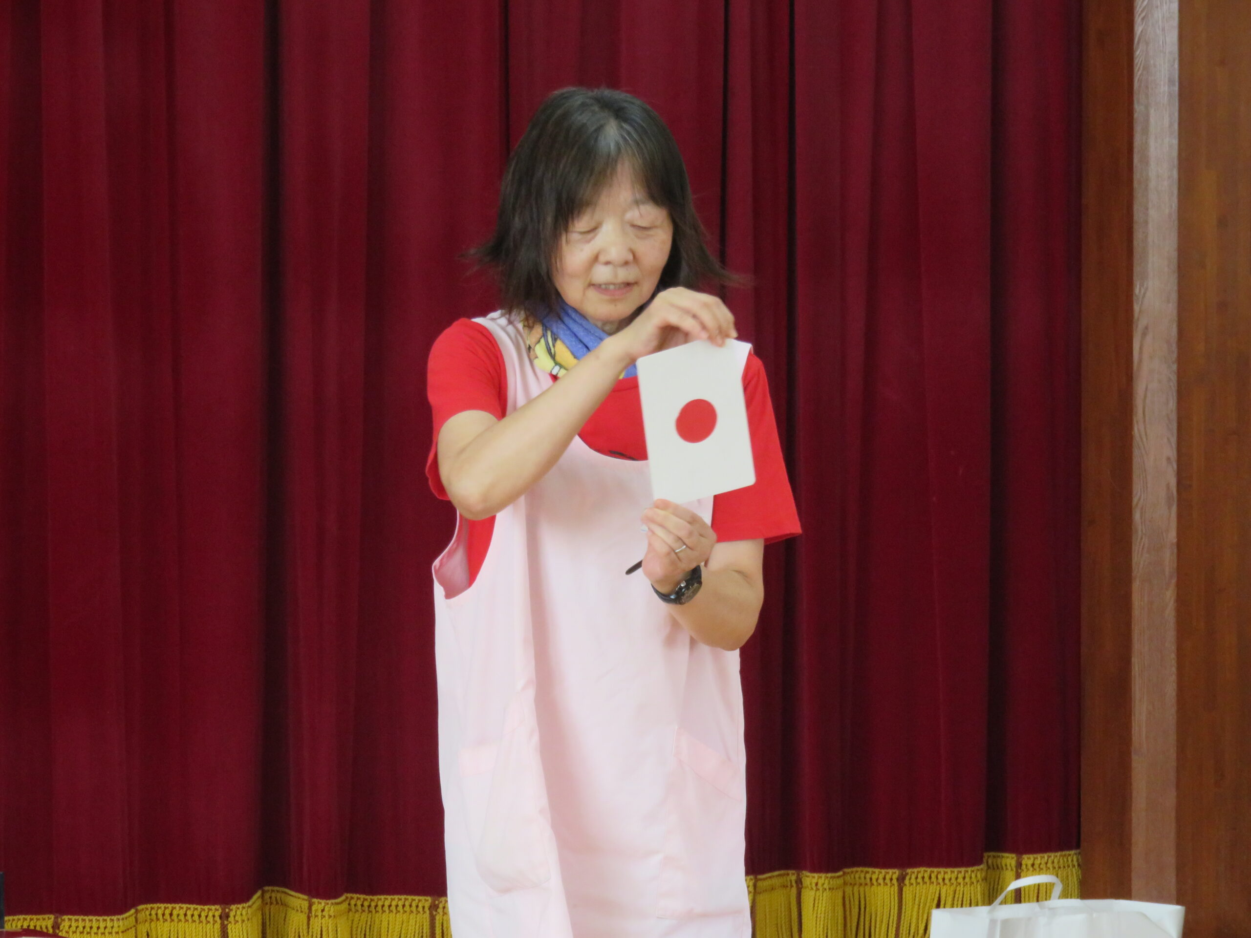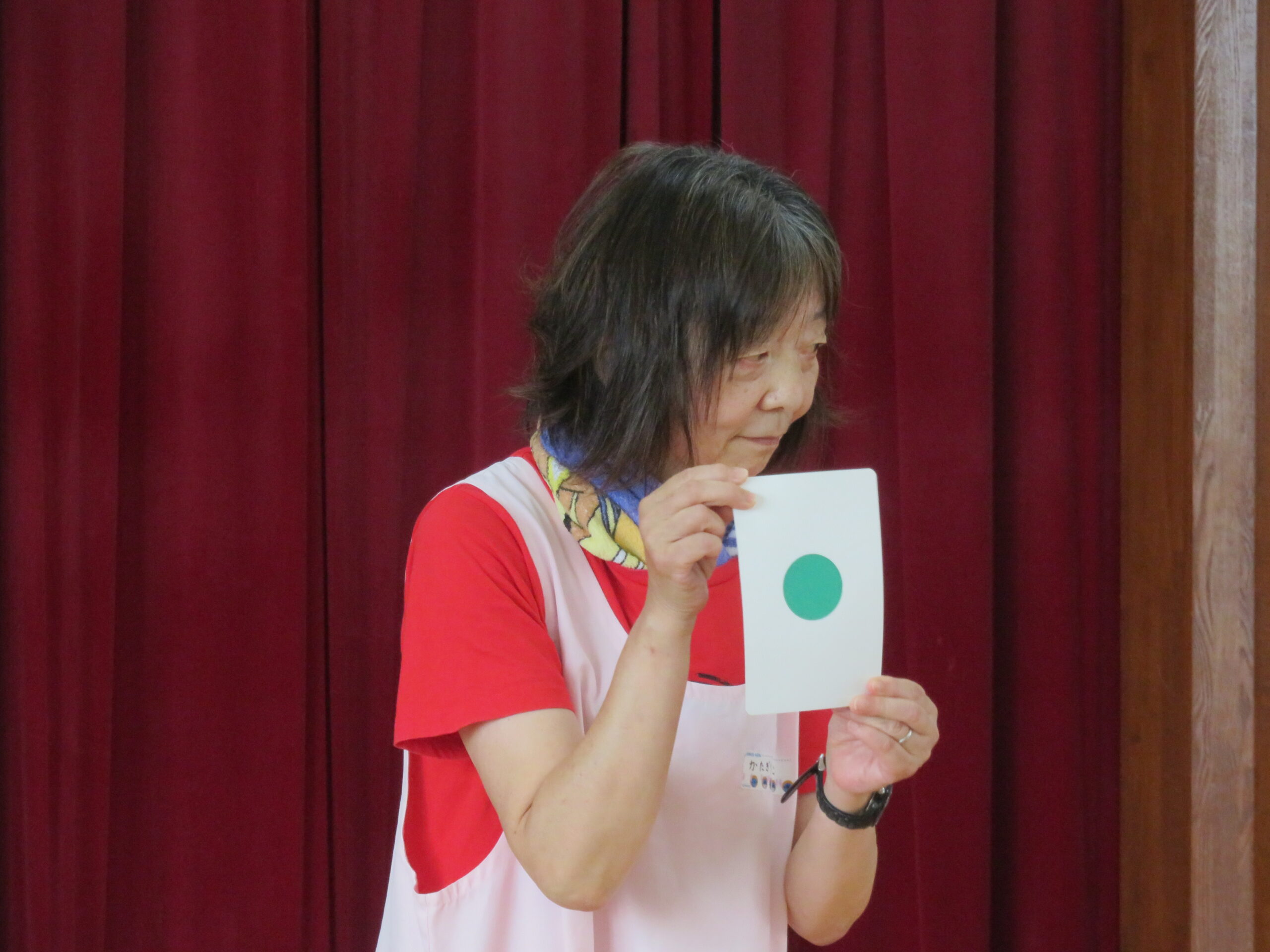 表にあかい丸、裏にみどりの丸がついている紙を封筒に入れて・・・