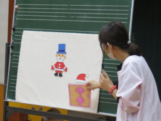 次に、みんなと一緒に「クリスマスのうたがきこえてくるよ」と「わらのなかのしちめんちょう」