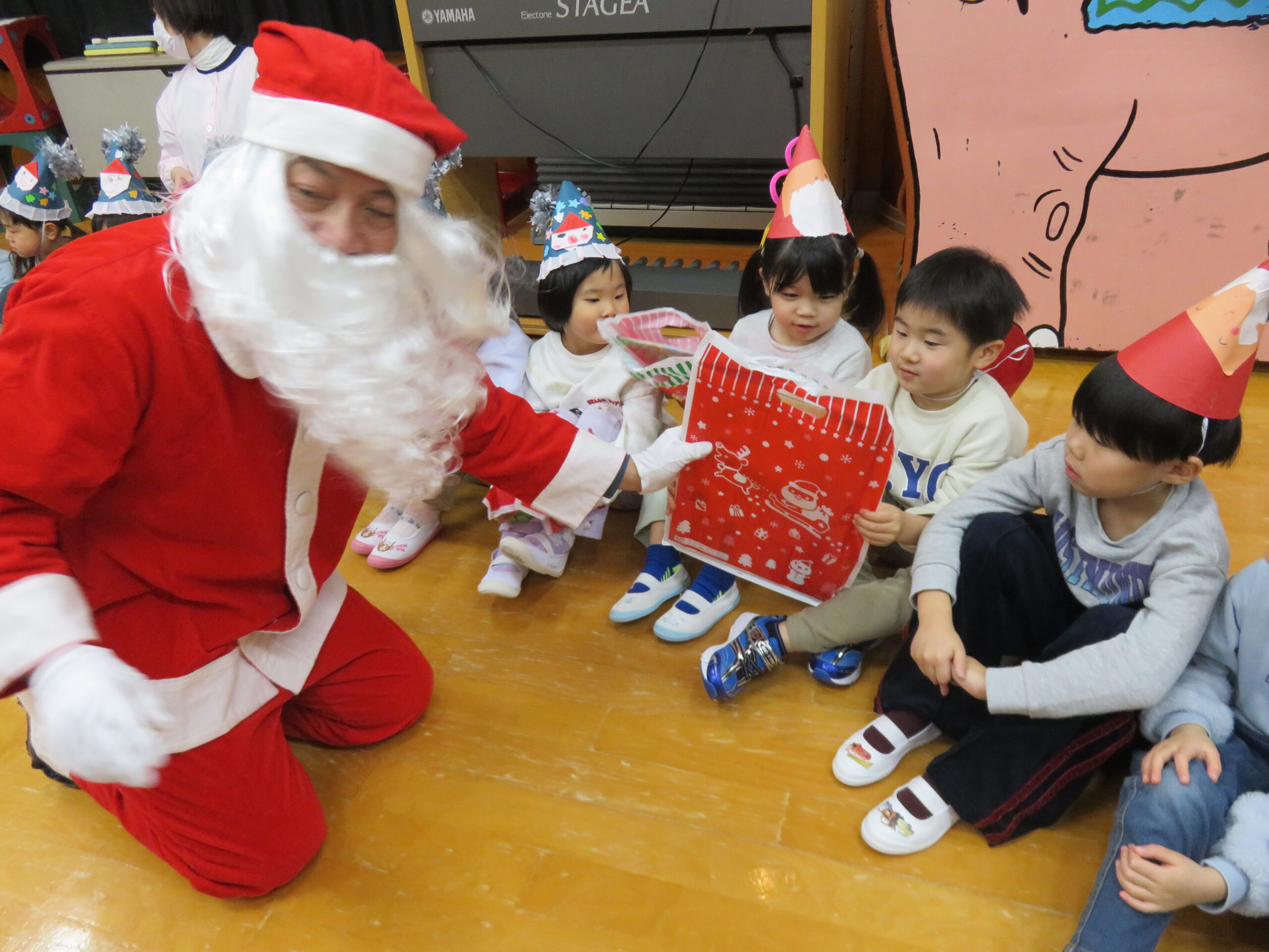 サンタさん、思わず間違ってしまって、子どもたちから激しいツッコミを受けていました(笑)