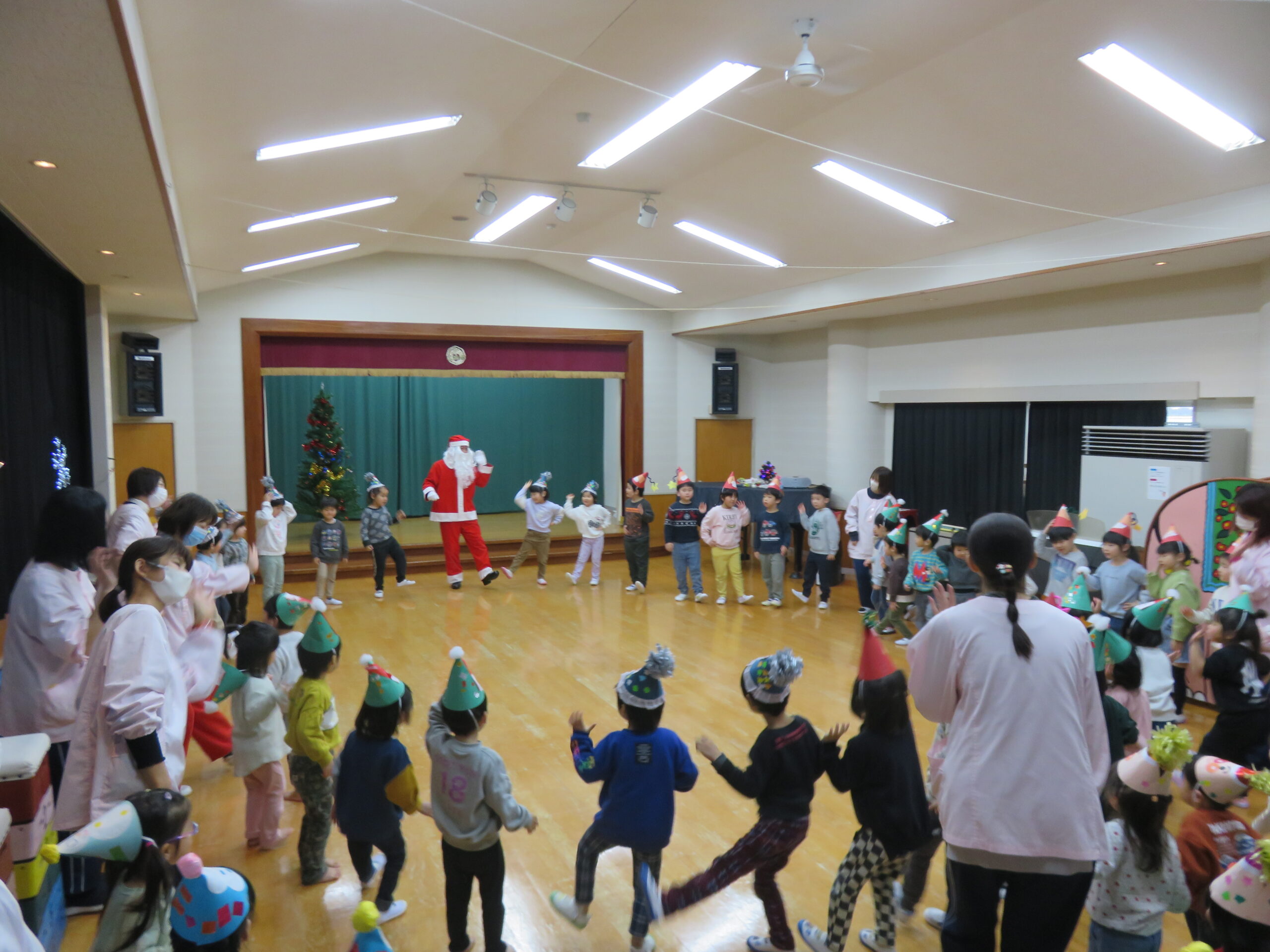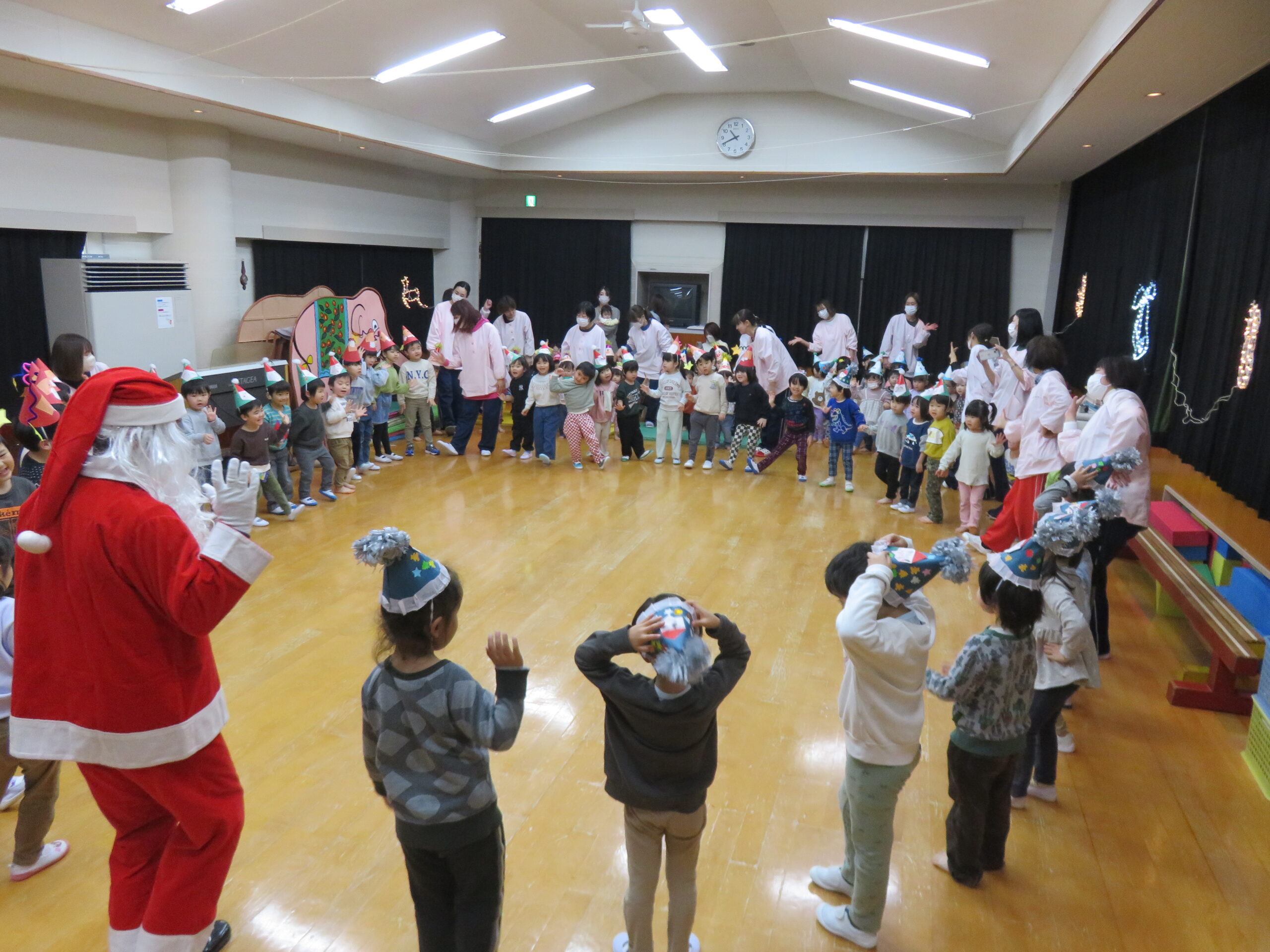今年も楽しい楽しいサンタの登場に、笑顔たくさんの子どもたち😆