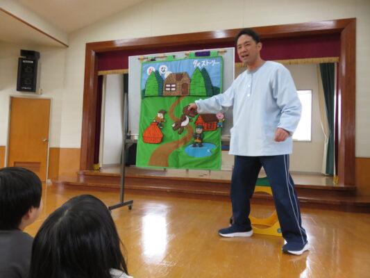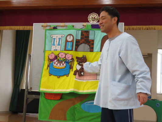 続いては先生からのペープサートのお話🐺🐷