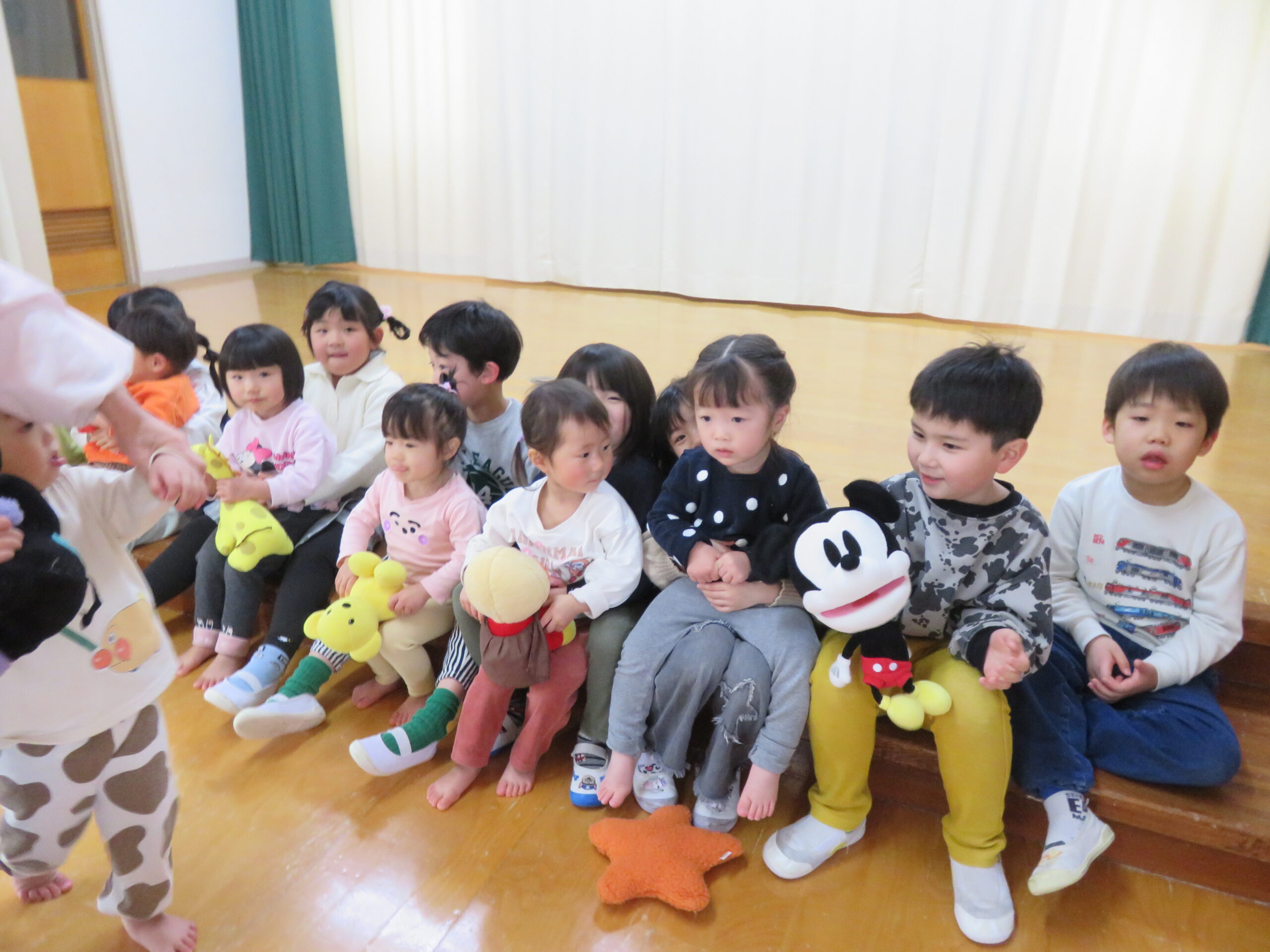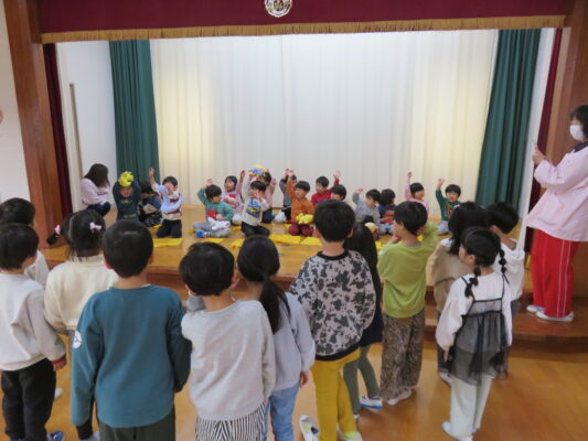小さいお友だちは、見つけた子が月組のお兄さん、お姉さんに抱っこしてもらいました😊