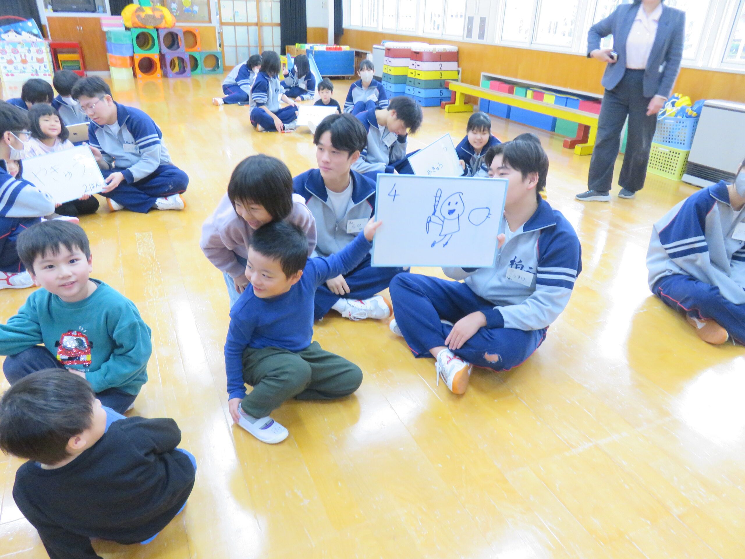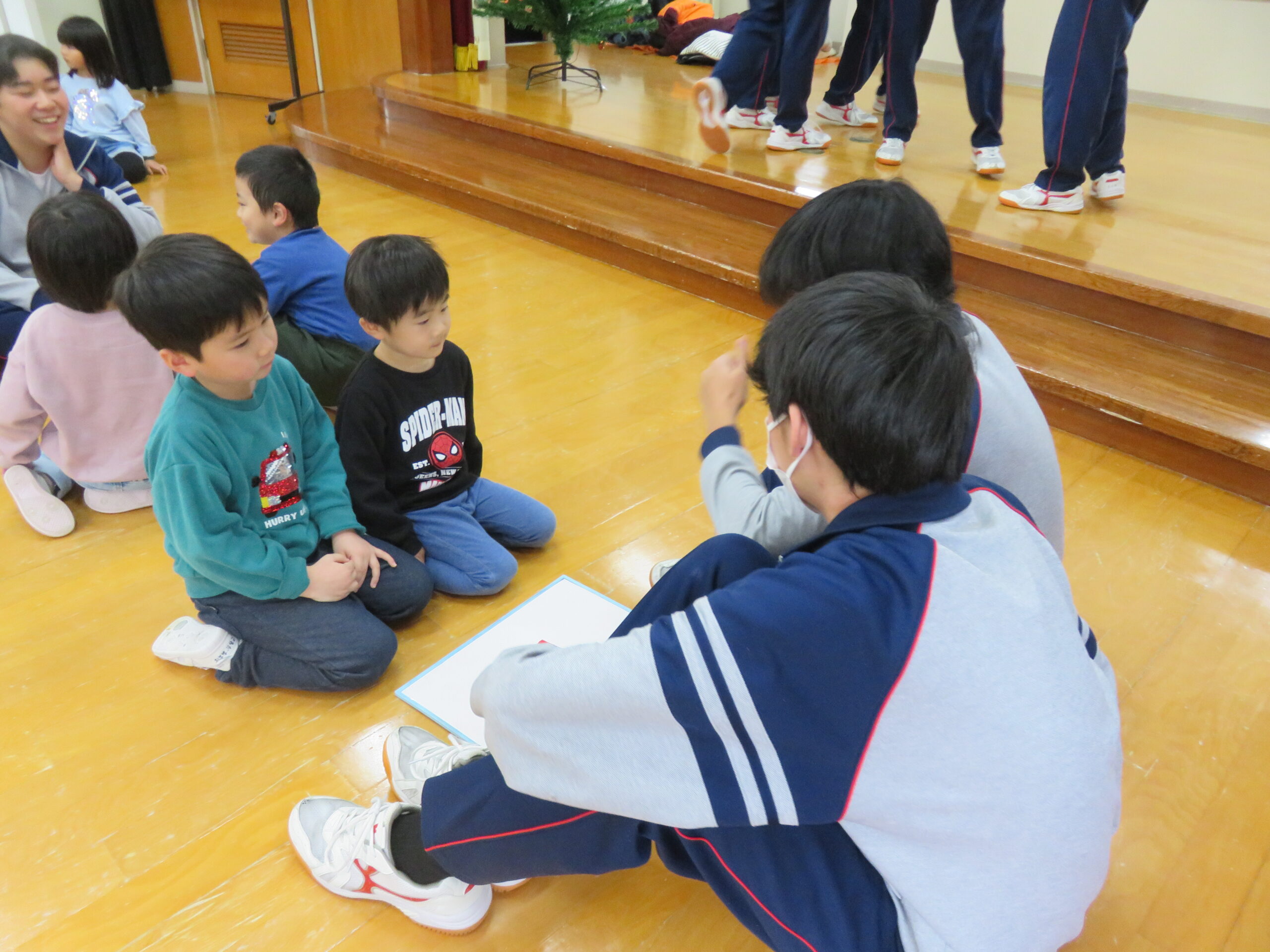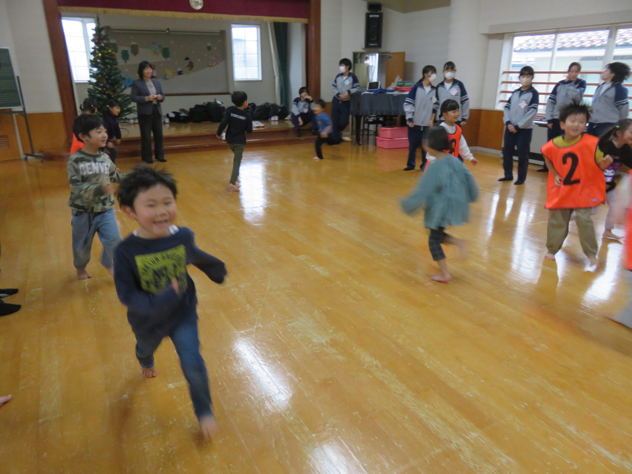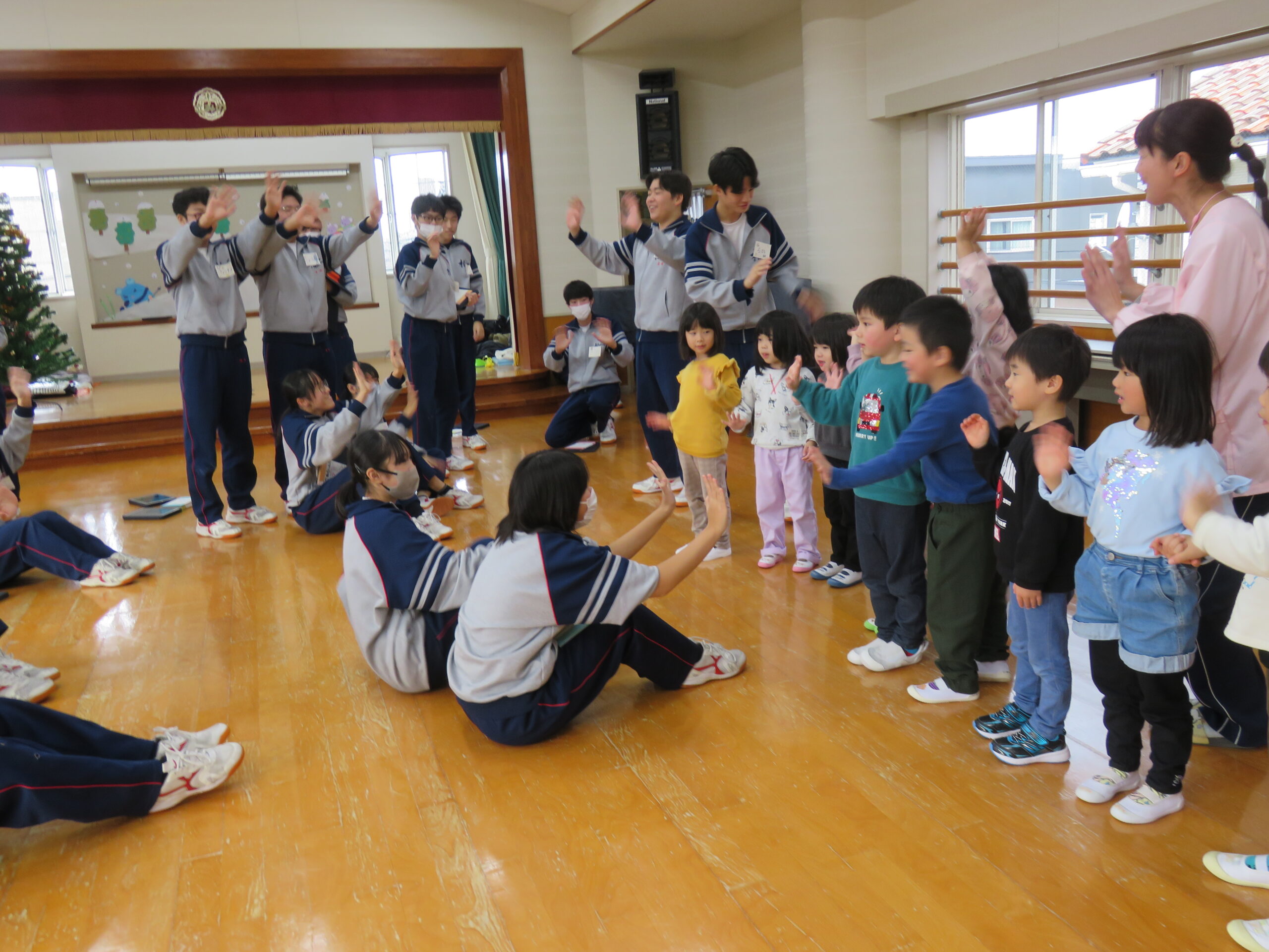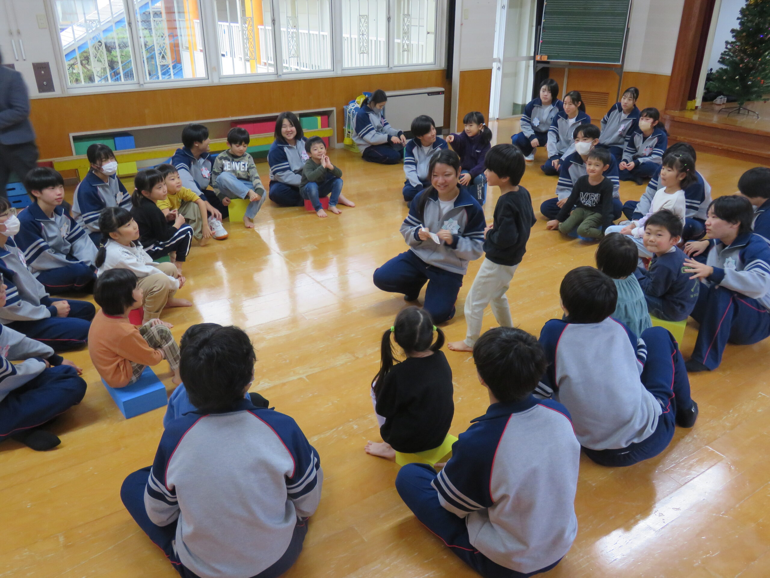 お兄さん、お姉さんたちが考えてきた遊びを一緒に行いました。優しい言葉がけや子どもたちを気づかって手助けしてくれたり等、子どもたちも安心して楽しく参加することができました。