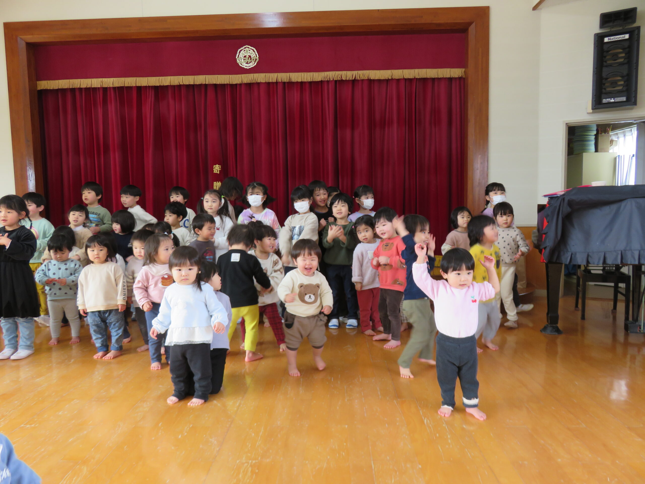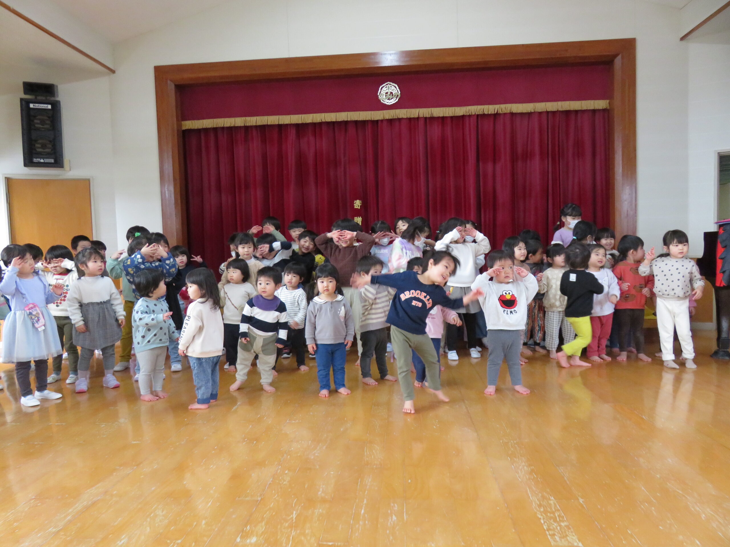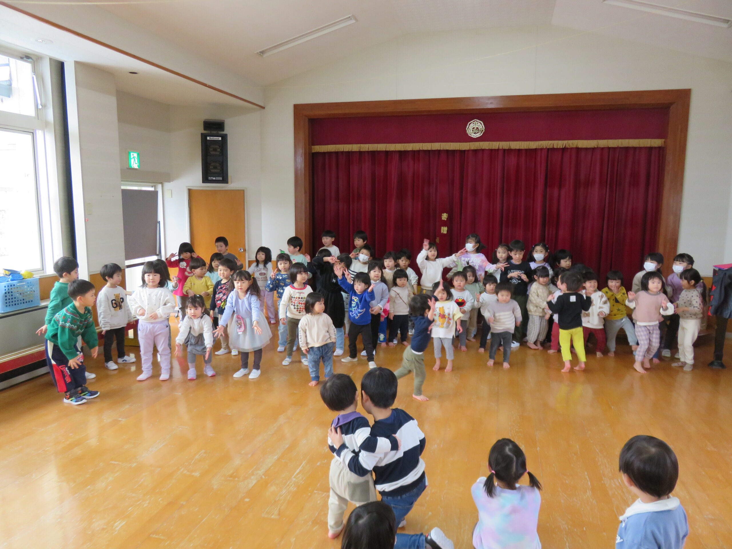 その後は「ダンスパーティー♪」おゆうぎ会で各クラスが踊った曲を保育園のみんなで踊りました♪